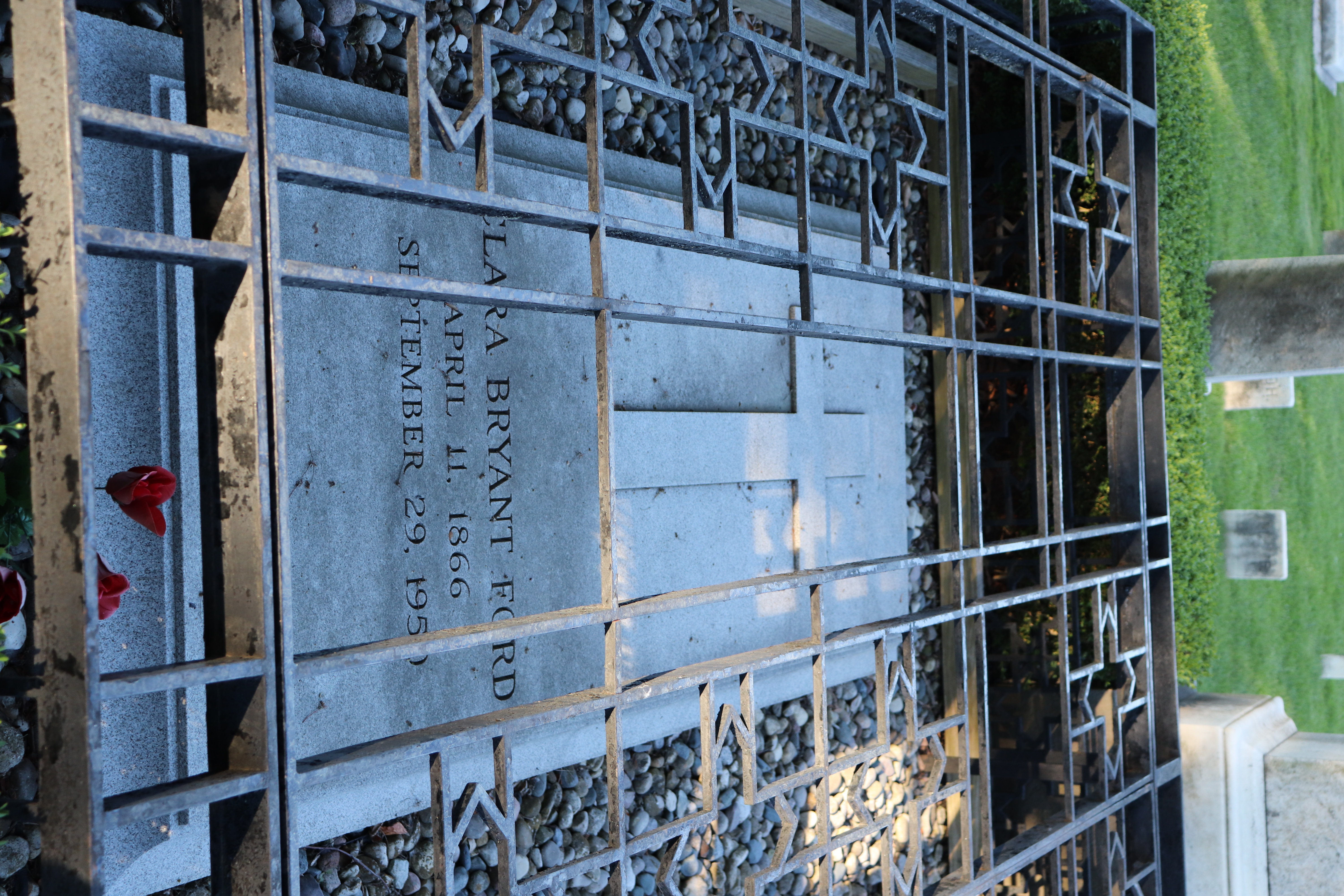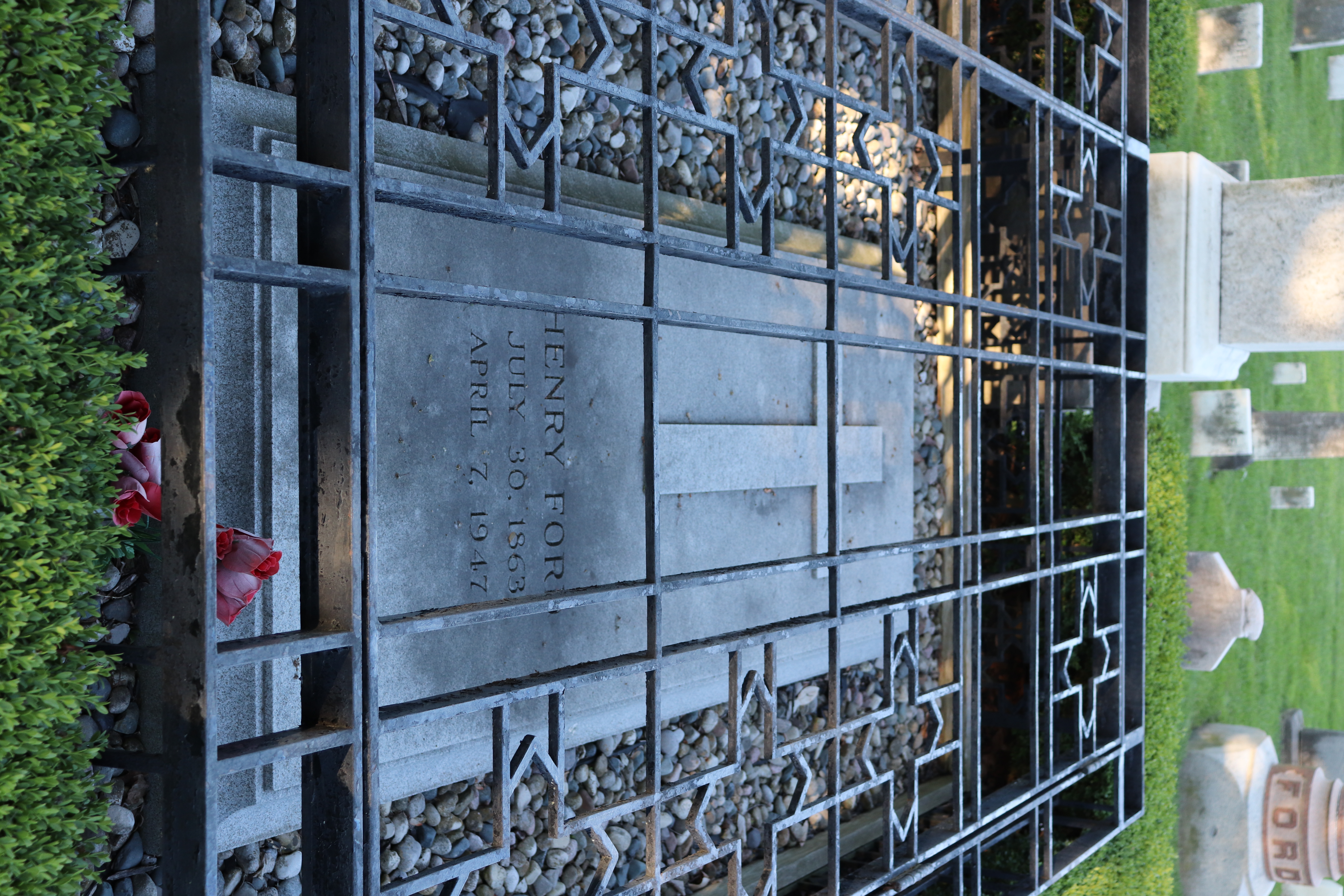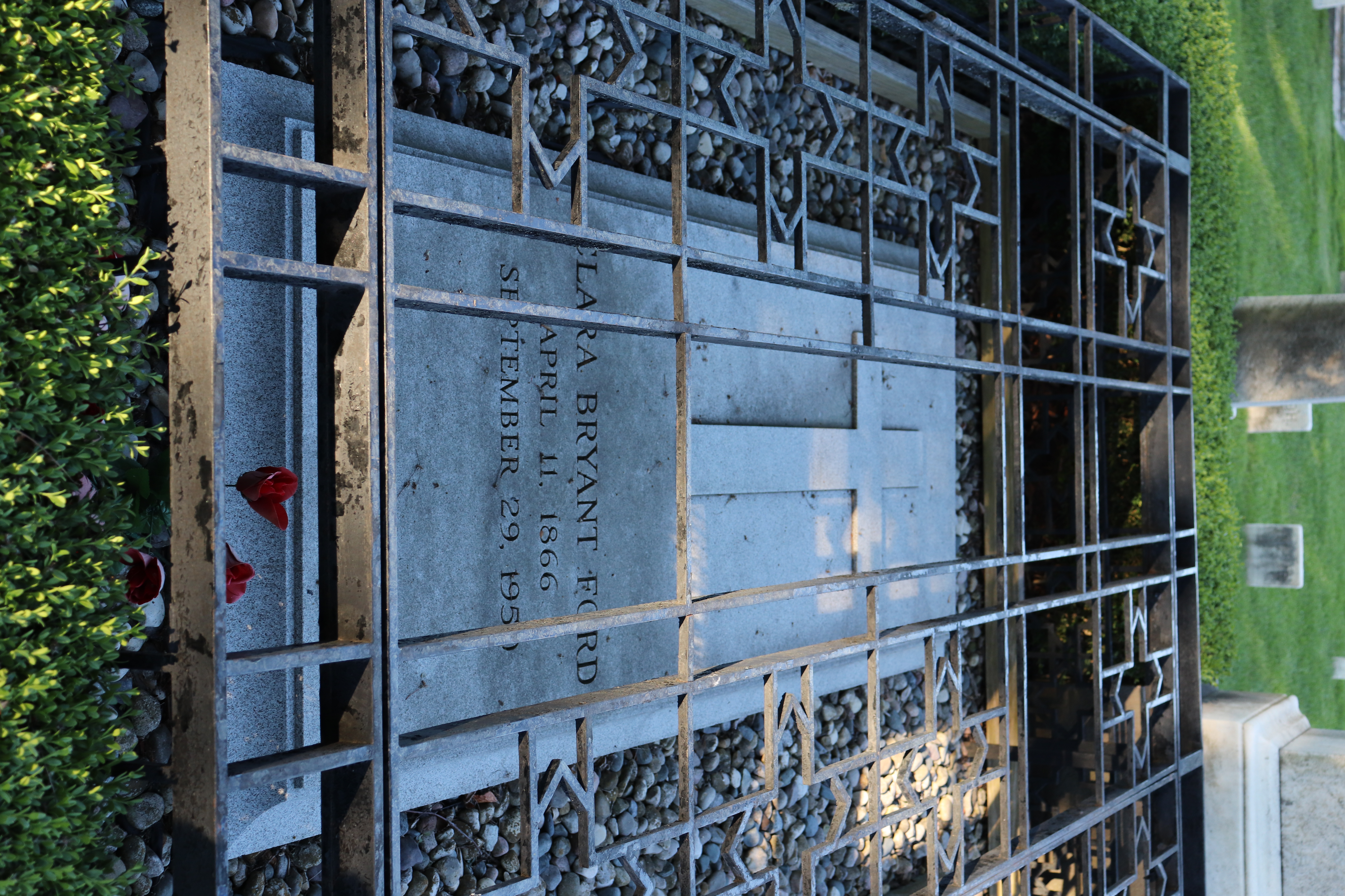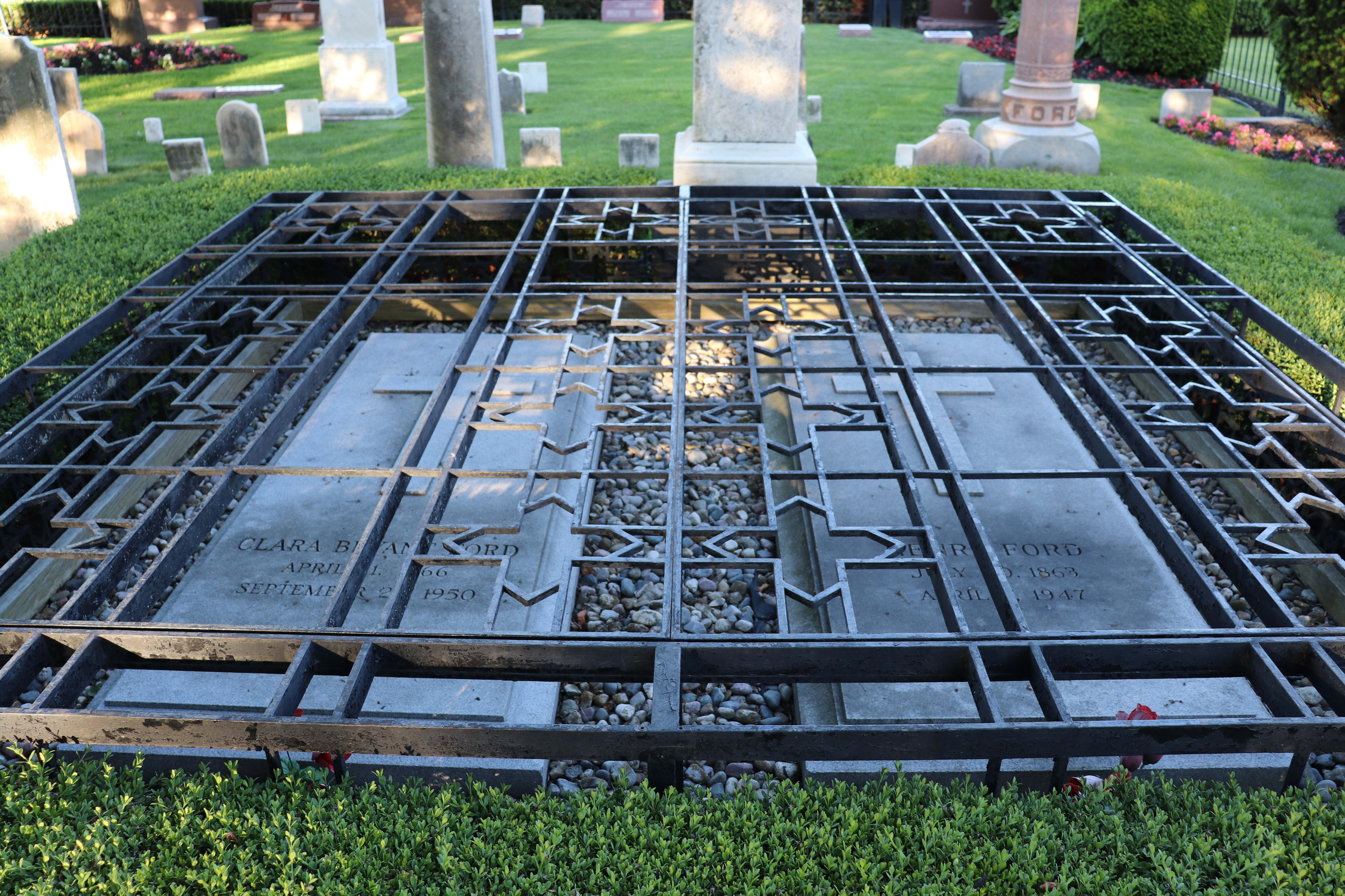 Buried adjacent to her husband Henry Ford.
